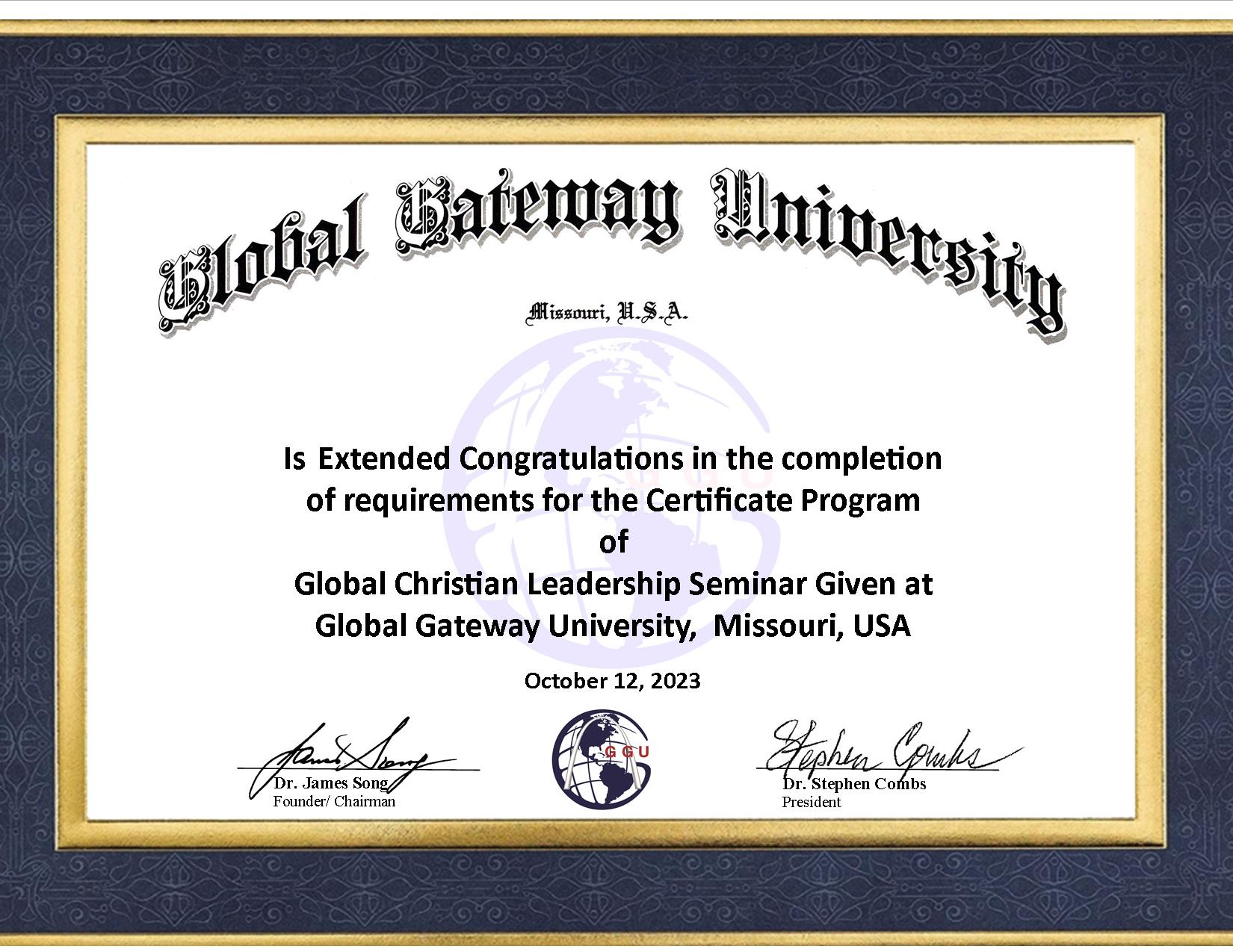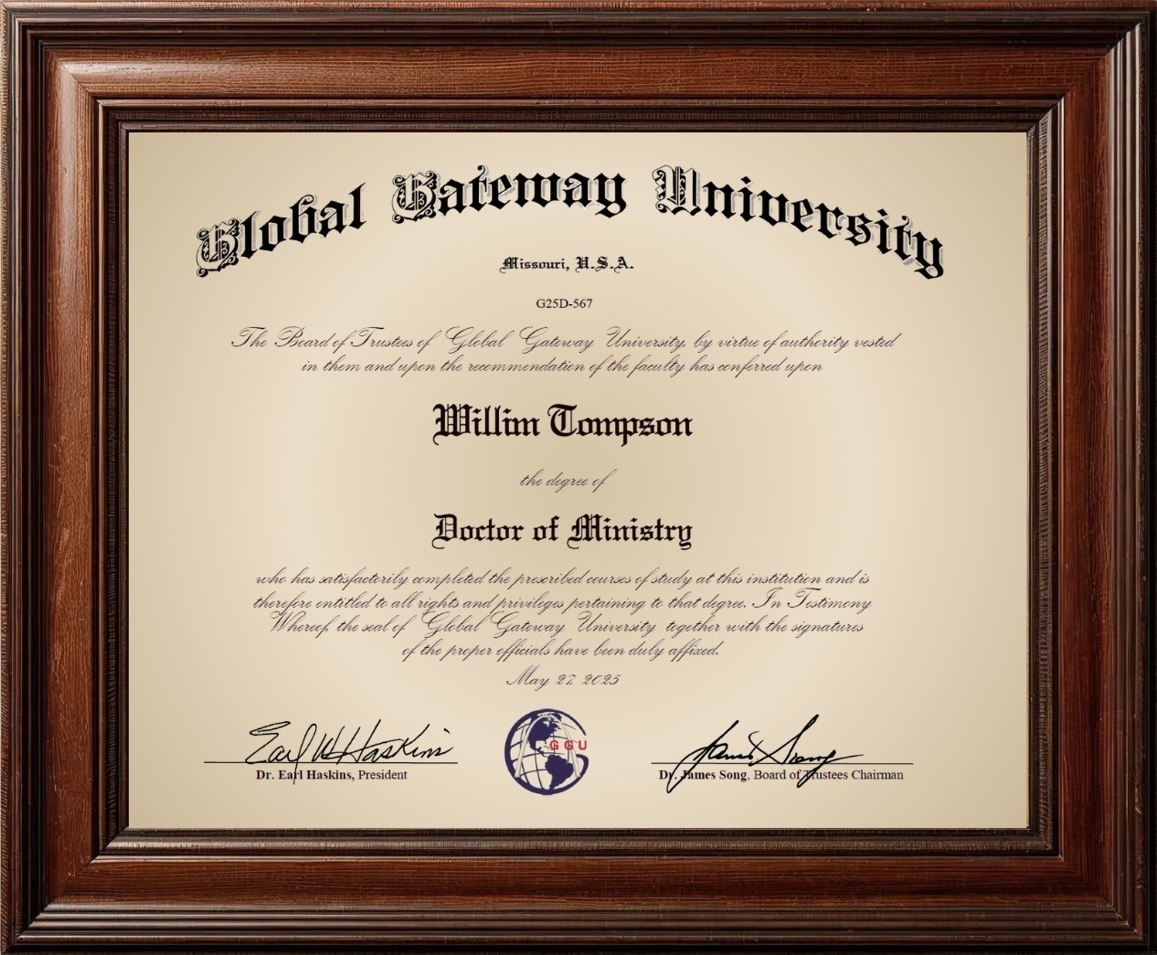 Global Gateway operates in the State of Missouri as an exempted, non-profit, religious, degree-granting institution, registered with the Missouri Department of Higher Education, status under sections 173.600 through 173.618, RSM; Offering Diplomas, Bachelors, Masters, and Doctoral degrees.
